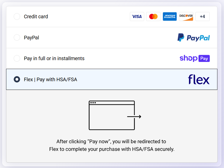 2. Select Flex at Checkout: On the payment page, select the "Flex | Pay with HSA/FSA" option.