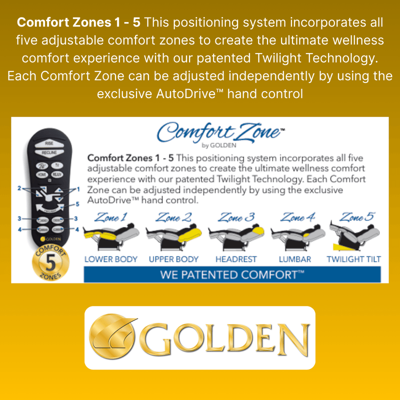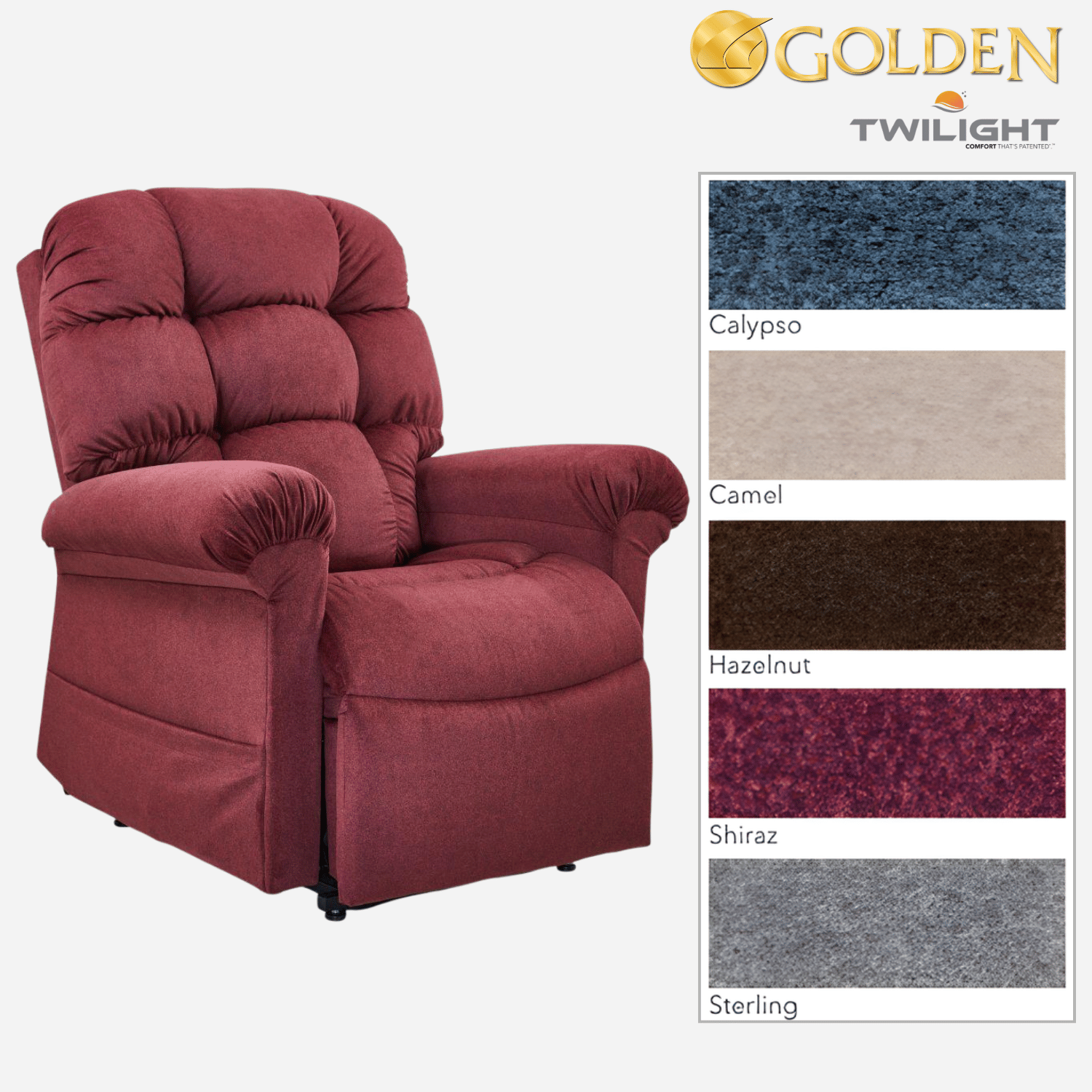 The Golden Cloud™ with Twilight lift chair is a premium model from Golden Technologies, renowned for its exceptional comfort and advanced features. It combines the best of both worlds: the cloud-like comfort of the MaxiComfort Cloud positioning system and the unique Twilight Tilt Technology.